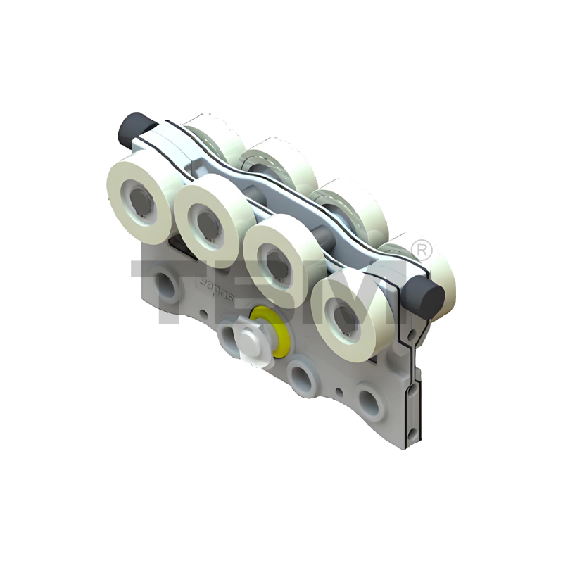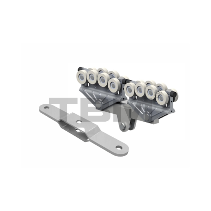 Tá cóireáil anodizing agus frith-chreimeadh déanta ar an rian cóimhiotal alúmanaim, le friotaíocht caitheamh maith, neart lúbthachta ard, meáchan éadrom, friotaíocht frithchuimilte íseal (50% níos éadroime ná rian traidisiúnta KBK), dearadh modúlach, suiteáil éasca, 5 mhúnla a roghnú, fionraí iarnróid aonair, bhíoma aonair, bhíoma dúbailte, bhíoma teileascópach, féinsheasamh teaglaim agus struchtúir eile le roghnú as. Tá modhanna suiteála nasc solúbtha agus docht roghnach, agus tá na hailt rian ceangailte gan uaim. Tá torann na hoibríochta láimhe / leictreacha íseal, agus déanann na rothaí níolón an rian a chaitheamh íseal. Ritheann sé go ciúin agus go réidh, oiriúnach do raonta níos mó.